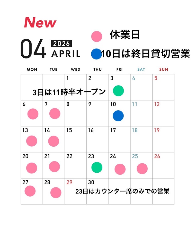 4/1~4/5 MENU A.ドライグリーンカレーのベジDON+キノコのスープ B.トマトミートとポテトのグラタン&パン+サラダ C.人参サラダとベーコンのトーストサンド+キノコのスープ ※食材の都合により予告なく変更になることもあります 店内席、お席のご予約についてはこちらをご覧ください(2026年も同様) ・スイーツは4種のスコーン(季節のスコーンはアップルシナモンとレモン)、糀甘酒寒天プリン ★テラス席はGW頃からopen予定