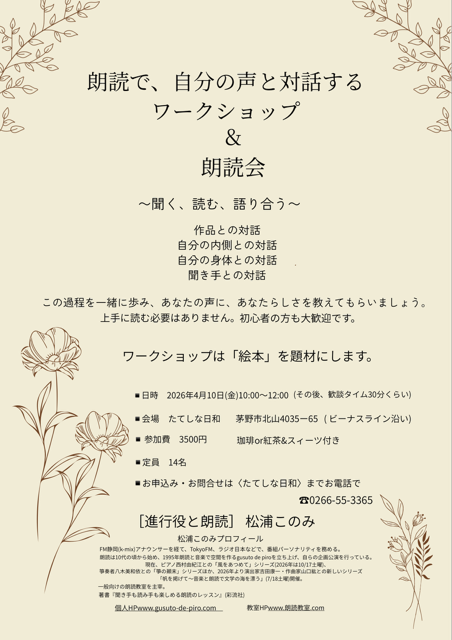 個人HP www.gusuto-de-piro.com 教室HP www.朗読教室.com
